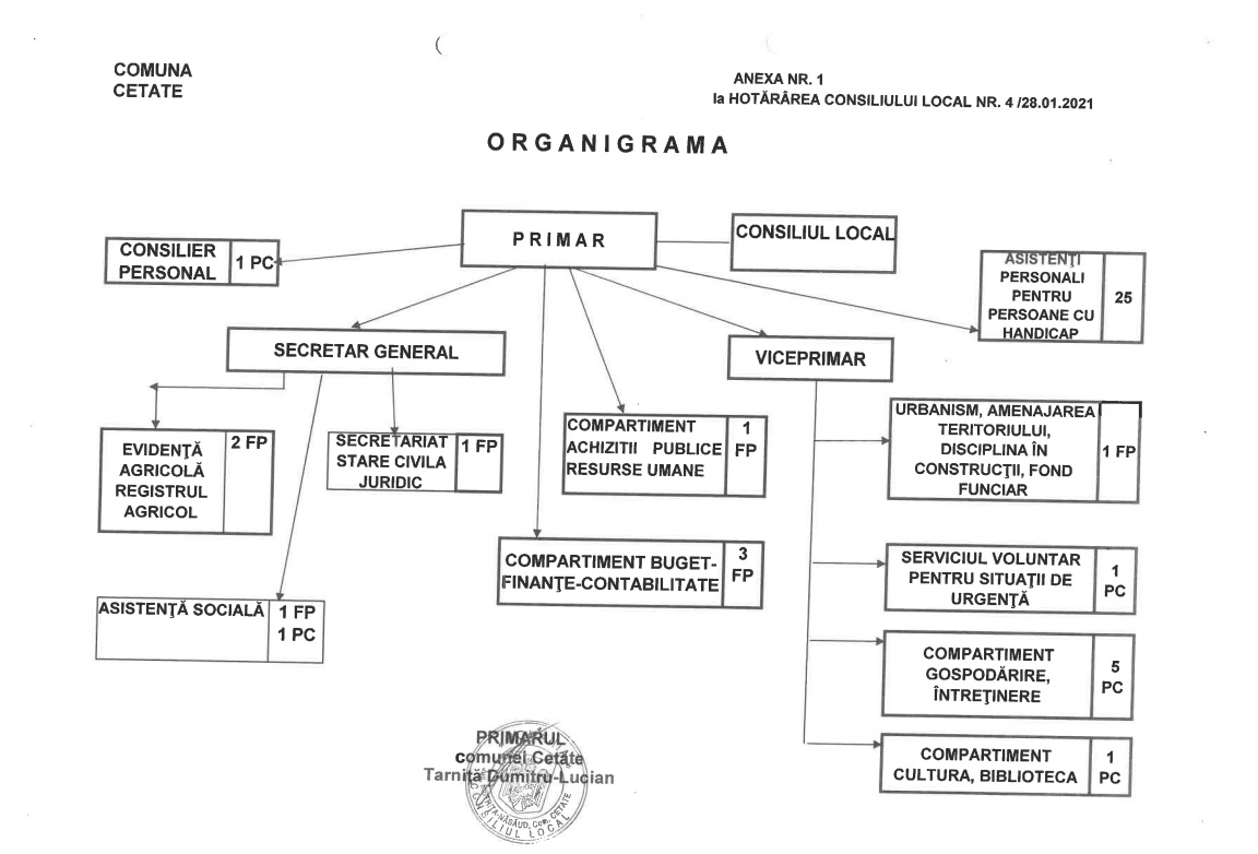 Organigrama Primariei Comunei Cetate pe anul 2021