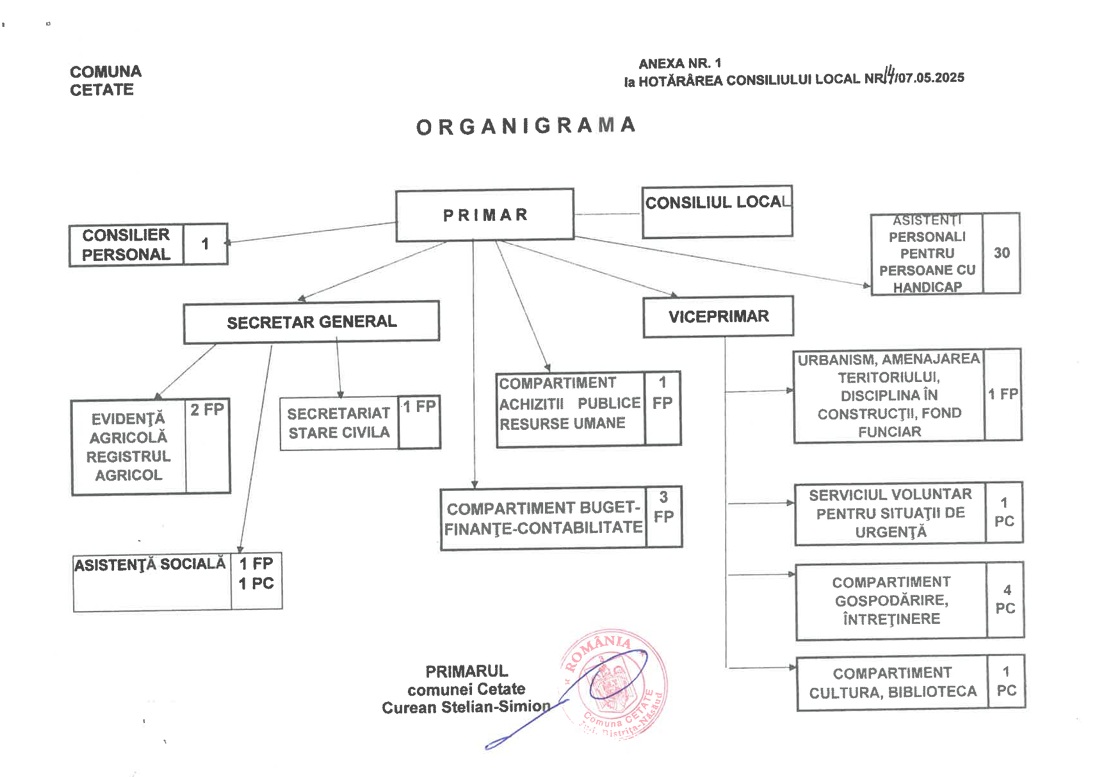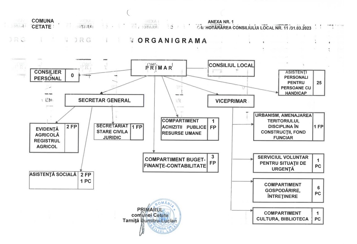 Organigrama Primariei Comunei Cetate pe anul 2025