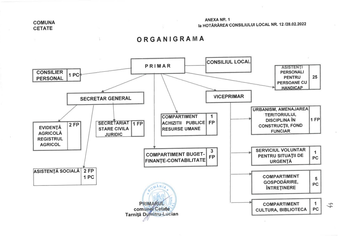 Organigrama Primariei Comunei Cetate pe anul 2022